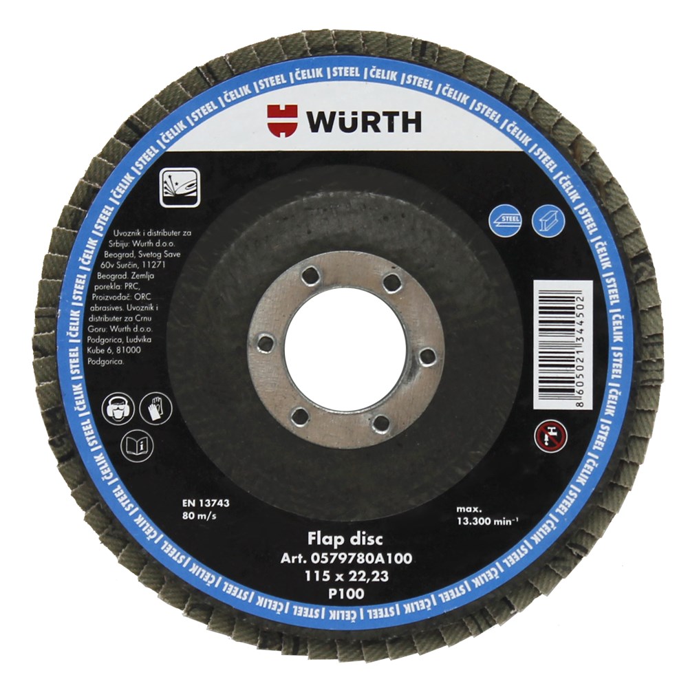 Po vlerësoni:Disk axhustimi, Wurth, 115x22 mm, Grit 100, gërryes