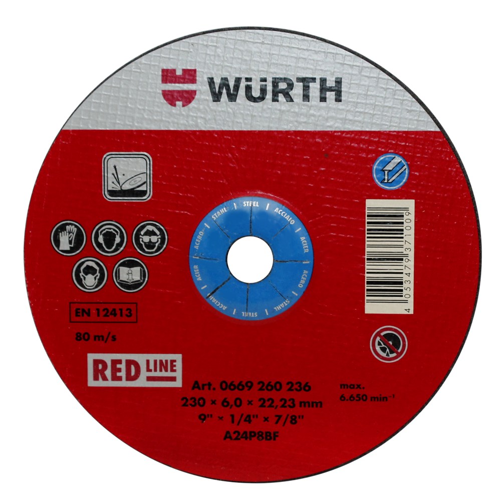 Disk axhustimi, Wurth, Red Line, 230x6.0 mm, çelik