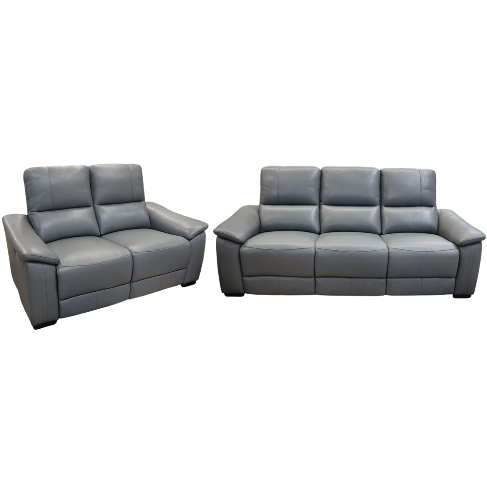 Set divanësh, i cili përbëhet nga një divan me tre ndenjëse, me përmasa 218x99xH102 cm, dhe një divan me dy ndenjëse, me përmasa 160x99xH102 cm. Struktura mbajtëse është e përbërë nga shufra rezistente druri dhe melamine. Mbushja e brendshme mesatarisht e butë përbëhet nga materiale sfungjeri me densitet të lartë. Veshja e jashtme e divanëve përbëhet nga material lëkure të butë, në ngjyrë gri të errët. Dizajni minimalist dhe funksional e bën këtë produkt një zgjedhje optimale për ambientet tuaja të brendshme. Përmasat kompakte lejojnë që ky set të përshtatet më së miri në ambiente të brendshme me pak hapësirë, duke e bërë këtë produkt të përshtatshëm edhe për ambientet e zyrave, sallave të pritjes apo ambienteve të tjera formale.