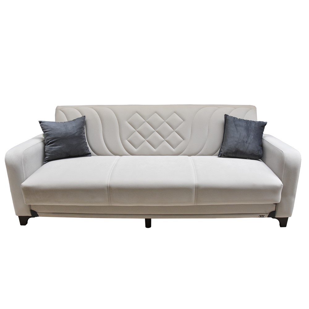 Divan, 3-vendësh, Mega, këmbë plastike, tapiceri tekstili, krem, 220x90xH95 cm, krevat: 110x190 cm