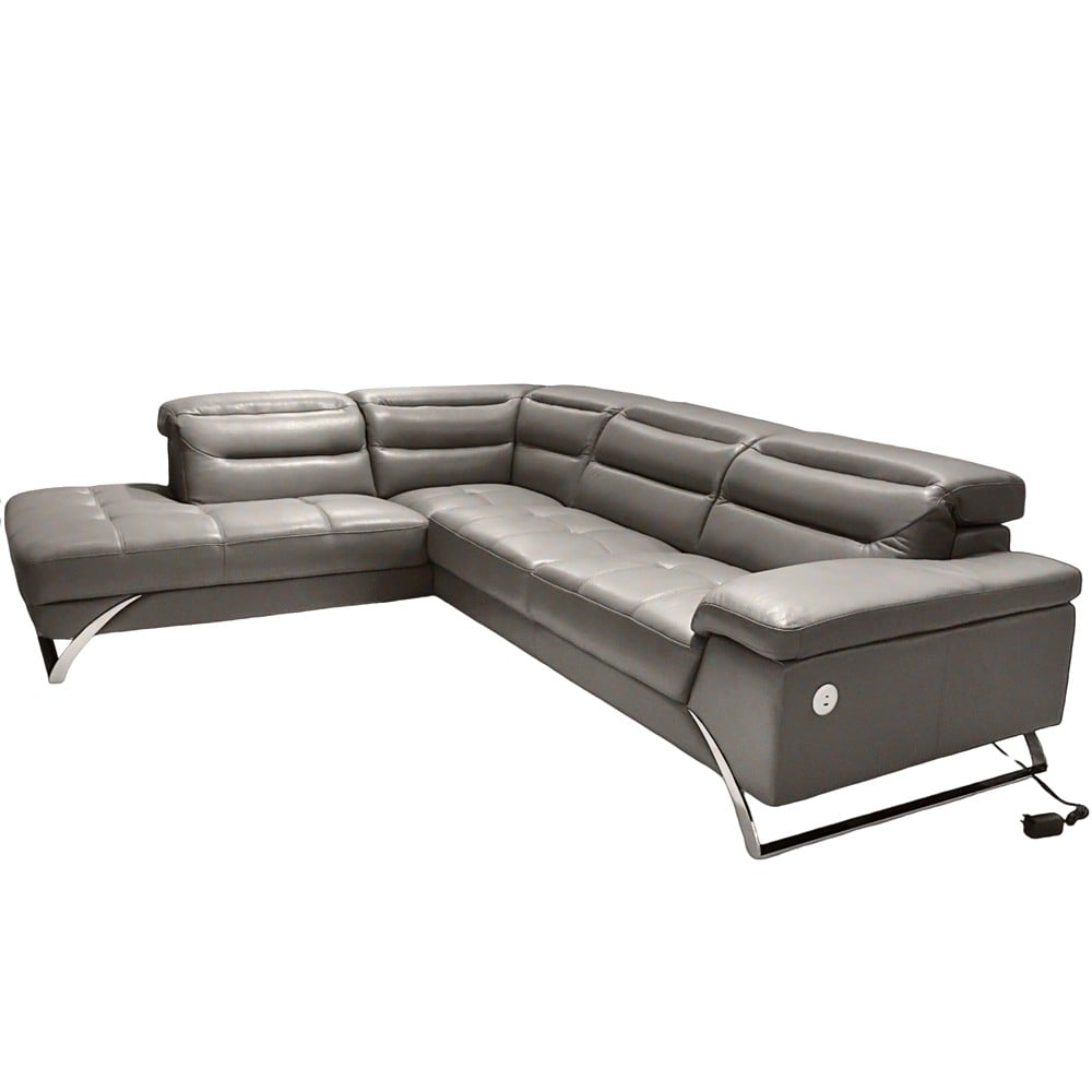 Divan këndor, majtas, lëkurë, këmbë metalike, kafe, (290x230 cm)x104xH75/98 cm