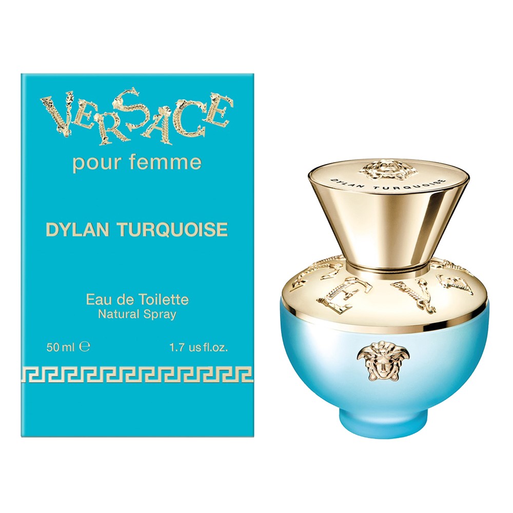 Eau de toilette (EDT) për femra, Dylan Turquoise, Versace, qelq, 50 ml, gurkali dhe gold, 1 copë