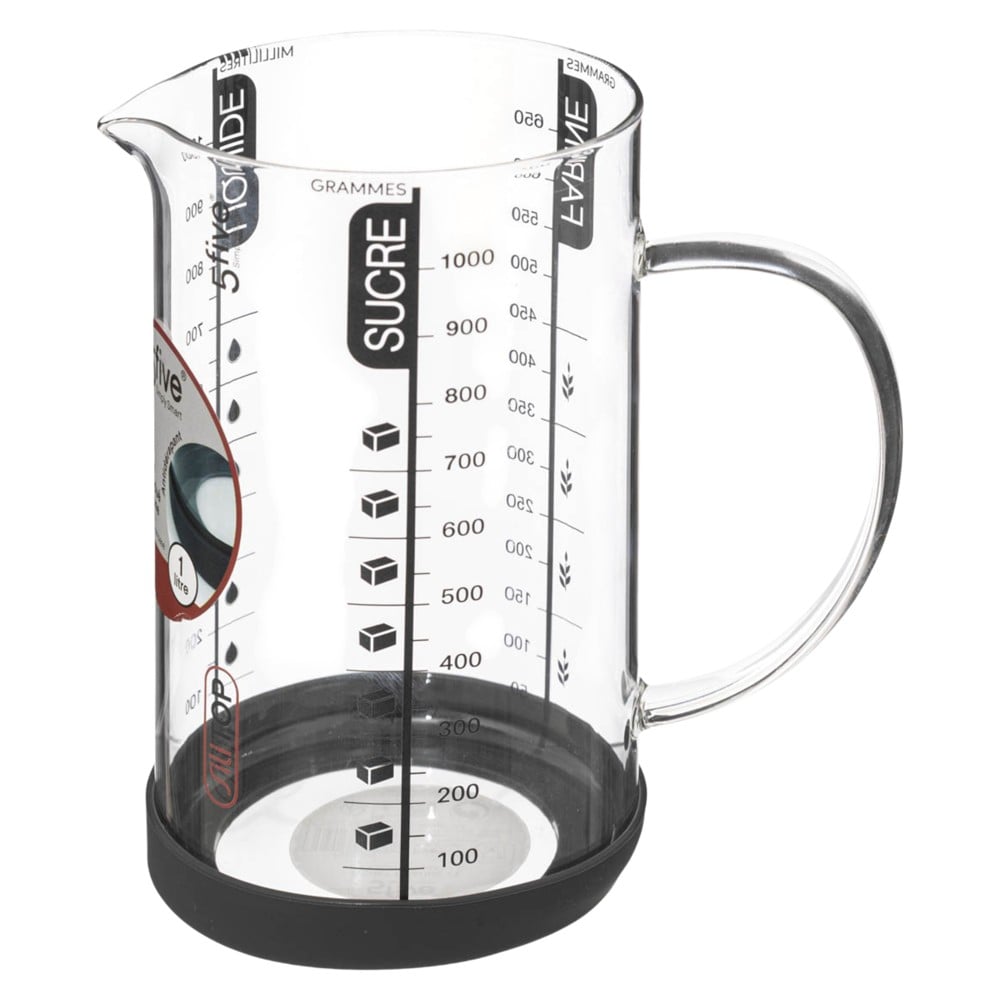 Kjo enë matëse e qelqtë transparente është një mjet esencial në çdo kuzhinë. Me një kapacitet prej 1 litri dhe një dizajn praktik (10 cm në diametër dhe 17 cm në lartësi), është perfekte për të matur me saktësi lëngje të ndryshme, si uji, vaji, apo lëngjet e kuzhinës. Qelqi i qartë lejon një shikim të qartë të përmbajtjes.