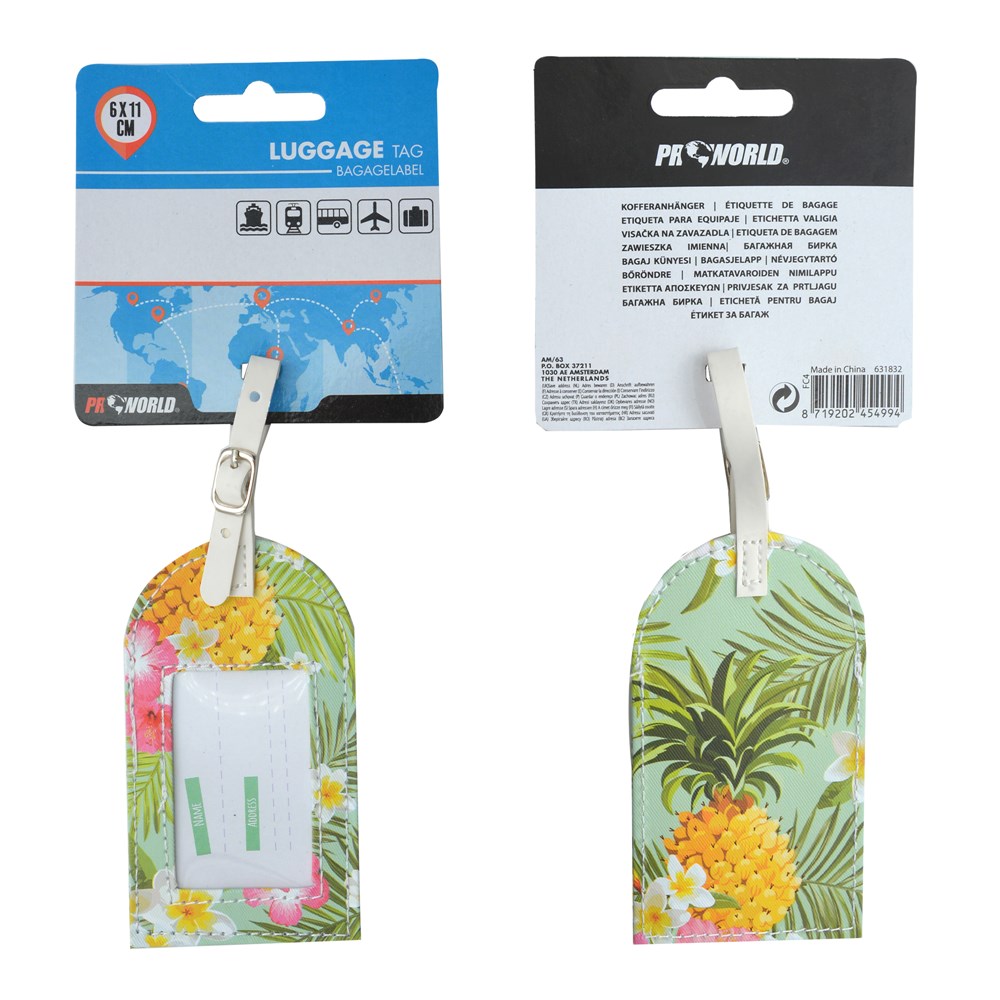Kjo varëse me printime dekorative eshte e pajisur me një vend për të futur adresën dhe emrin. Bërë me plastikë të mirë, me një rrip për të lehtësuar fiksimin në valixhe ose cante. Mund të përdoret për të udhëtuar me anije, tren, autobus dhe aeroplan.