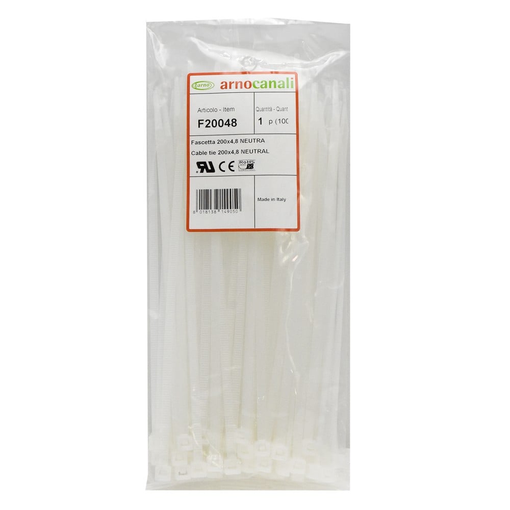 Fasheta plastike, 200mmX4,8mm, 100 cop, bardhe