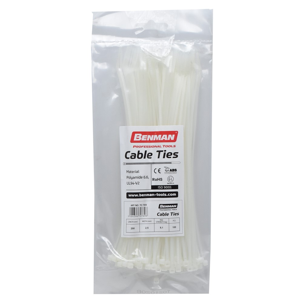 Fasheta plastike, Benman, 200mmX2,5mm, 100 cop, bardhe. Egzistojnë shumë llojë dhe madhësi vidhash,bulonash apo produkte të tjera në fushën e ndërtimit që bëjnë të mundur lidhjen apo fiksimin e konstruksioneve të ndryshme.Në varësi të projekteve apo përdorimit të tyre si për shembull,në çati,mure të thata apo beton,përdorimi dhe prodhimi i tyre rritet me rritjen e teknologjisë së ndertimit.Llojshmëria e tyre lidhet ngushtë dhe ndryshon nga projekti në projekt.