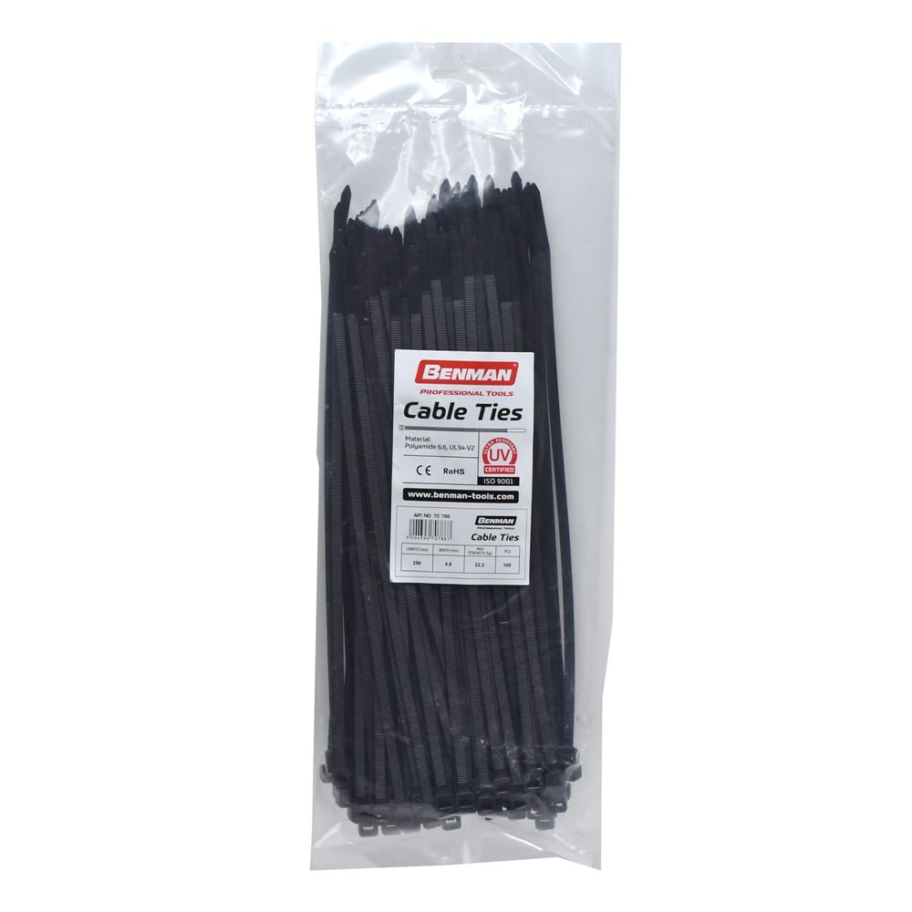 Fasheta plastike, Benman, 250mmX4,8mm, 100 cop, e zeze. Egzistojnë shumë llojë dhe madhësi vidhash,bulonash apo produkte të tjera në fushën e ndërtimit që bëjnë të mundur lidhjen apo fiksimin e konstruksioneve të ndryshme.Në varësi të projekteve apo përdorimit të tyre si për shembull,në çati,mure të thata apo beton,përdorimi dhe prodhimi i tyre rritet me rritjen e teknologjisë së ndertimit.Llojshmëria e tyre lidhet ngushtë dhe ndryshon nga projekti në projekt.