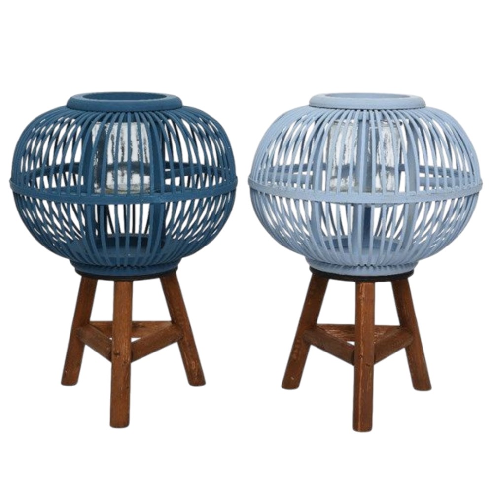 Fener dekorativ, bambu, Blu/Kafe, Ø31xH42 cm
