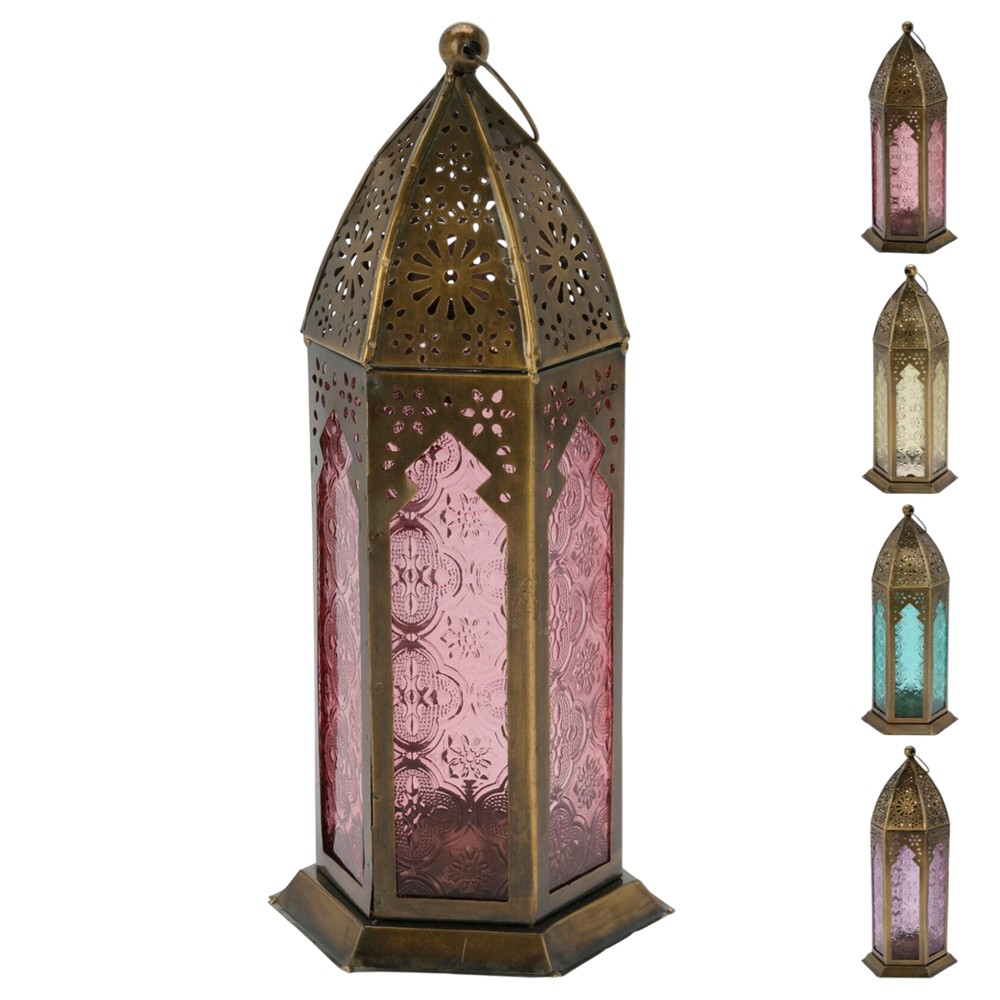 Fener dekorativ, metal, qelq, të ndrryshme, H29 x L13 x W13 cm