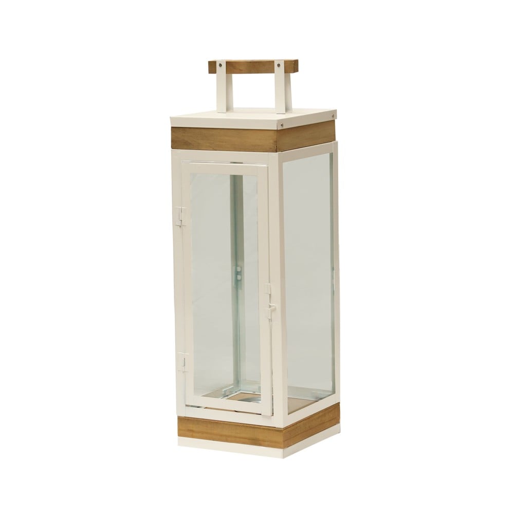 Fener dekorues , metal/xham/dru, e bardhë, 17xH35 cm
