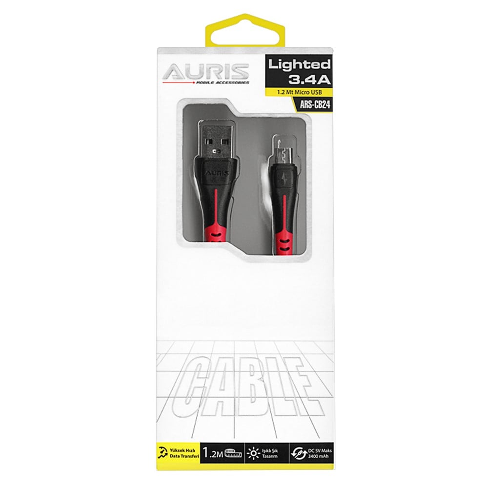 Fishë karikimi, Auris, CB24, USB-micro USB, 3.4 A, 120 cm, ngjyrë e zezë