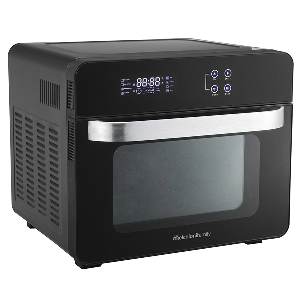 Fritezë me ajër + furrë me ndarje të madhe me kapacitet 24 litra. Shumëfunksionale: fritezë me ajër, furrë statike dhe me ventilator, skarë, tharëse. 13 programe të paravendosura + cilësim falas: ngrohja paraprake, patate të skuqura, mish, këmbë pule, biftekë, karkaleca deti, ëmbëlsira, peshk, pulë e pjekur, perime, pica, dehidratues. Ekran dixhital me prekje të plotë, dyer xhami. Koha e rregullueshme: nga 1 deri në 90 min. Temperatura e rregullueshme: 45-230°C. Aksesorët e përfshirë: tabaka për pika, grilë, darë për skarë, tabaka rrjetë. Fuqia: 1400-1700 W.