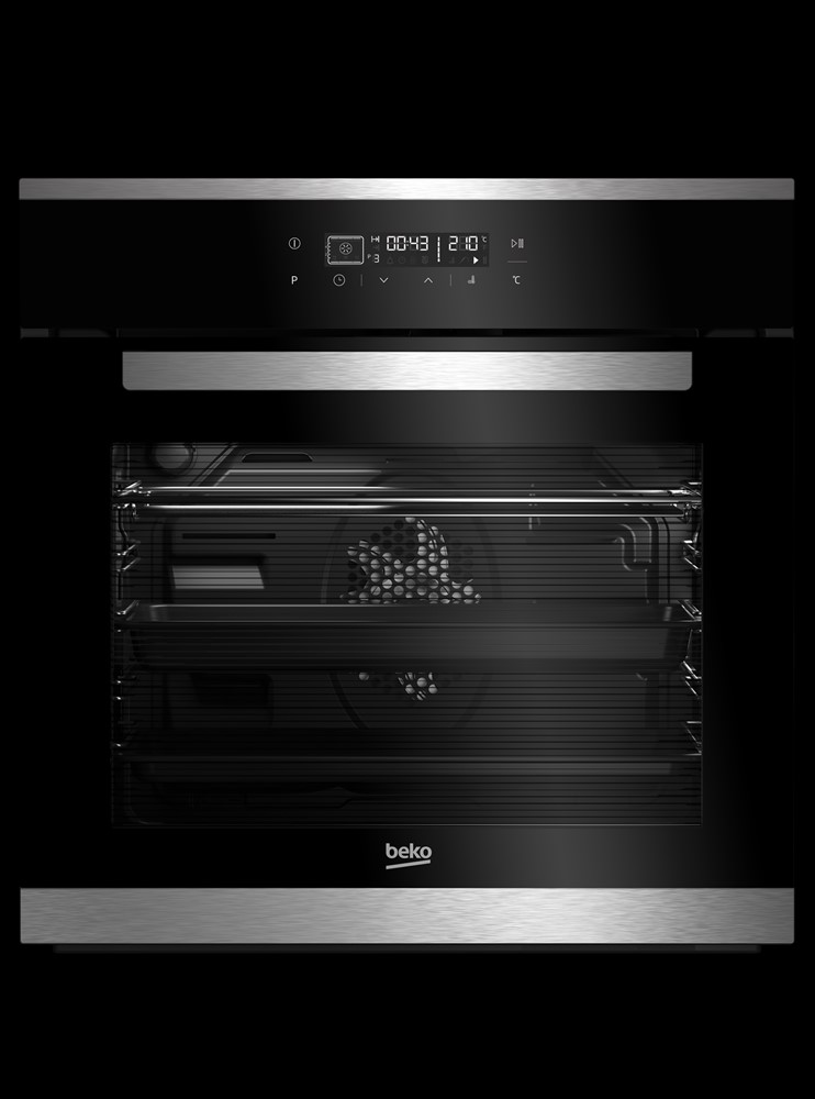 Furra Beko BIE 25400 XM (BIE25400XM) është një furrë e mrekullueshme e pavarur me kontroll mekanik, e cila përshtatet në mënyrë të përkryer në çdo grup kuzhine. Falë furrës elektrike, ju mund të piqni në mënyrë të barabartë dhe të shpejtë mish me lëng ose të piqni një tortë të kuqe, si dhe t'i gatuani këto dy pjata në të njëjtën kohë në disa nivele. Ventilatori drejton ajrin, shpërndan në mënyrë të barabartë nxehtësinë në të gjithë sipërfaqen e furrës, gjë që lejon jo vetëm gatimin, por edhe shkrirjen dhe tharjen e ushqimit. Kontrolli mekanik i furrës Beko ju lejon të vendosni njëkohësisht kohën e nevojshme për gatim, temperaturën, modalitetin me ndihmën e celësave rrotullues. Me kohëmatësin mekanik të furrës nuk ka nevojë të shikoni orën dhe të numëroni minutat. Kur përfundon koha e gatimit që keni vendosur, kohëmatësi do t'ju njoftojë. Gatuani biftekun, peshkun ose perimet tuaja të preferuara në skarë. Mjafton të ndizni funksionin e skarës në furrën Beko. Nxehtësia bie në pjatë nga lart, duke e lejuar atë të mbetet e butë dhe e lëngshme brenda dhe e kuqërremtë me një kore krokante nga jashtë.