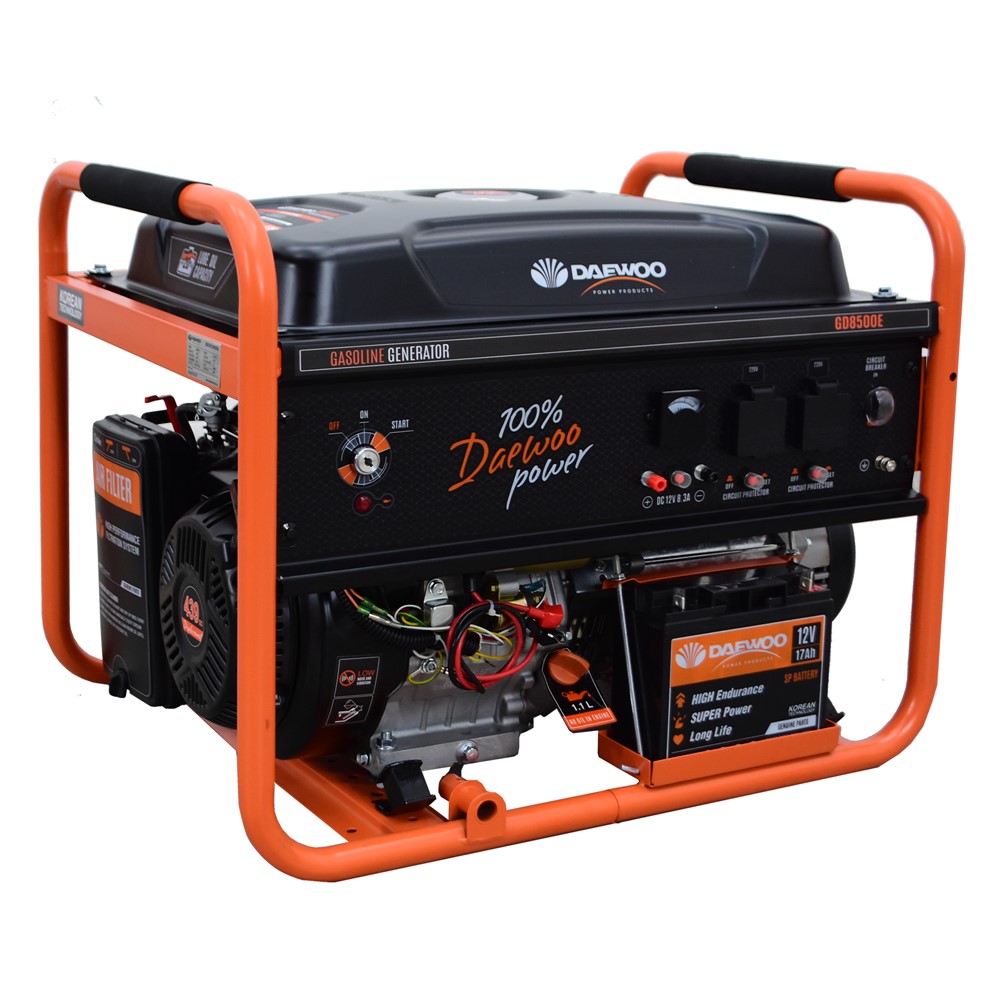 Gjenerator, DAEWOO 7.5/7 kW, 230 V / 50 Hz, 440 cc, 25 lt, benzinë, 1.1 Lt vaj, AVR, me motorrino