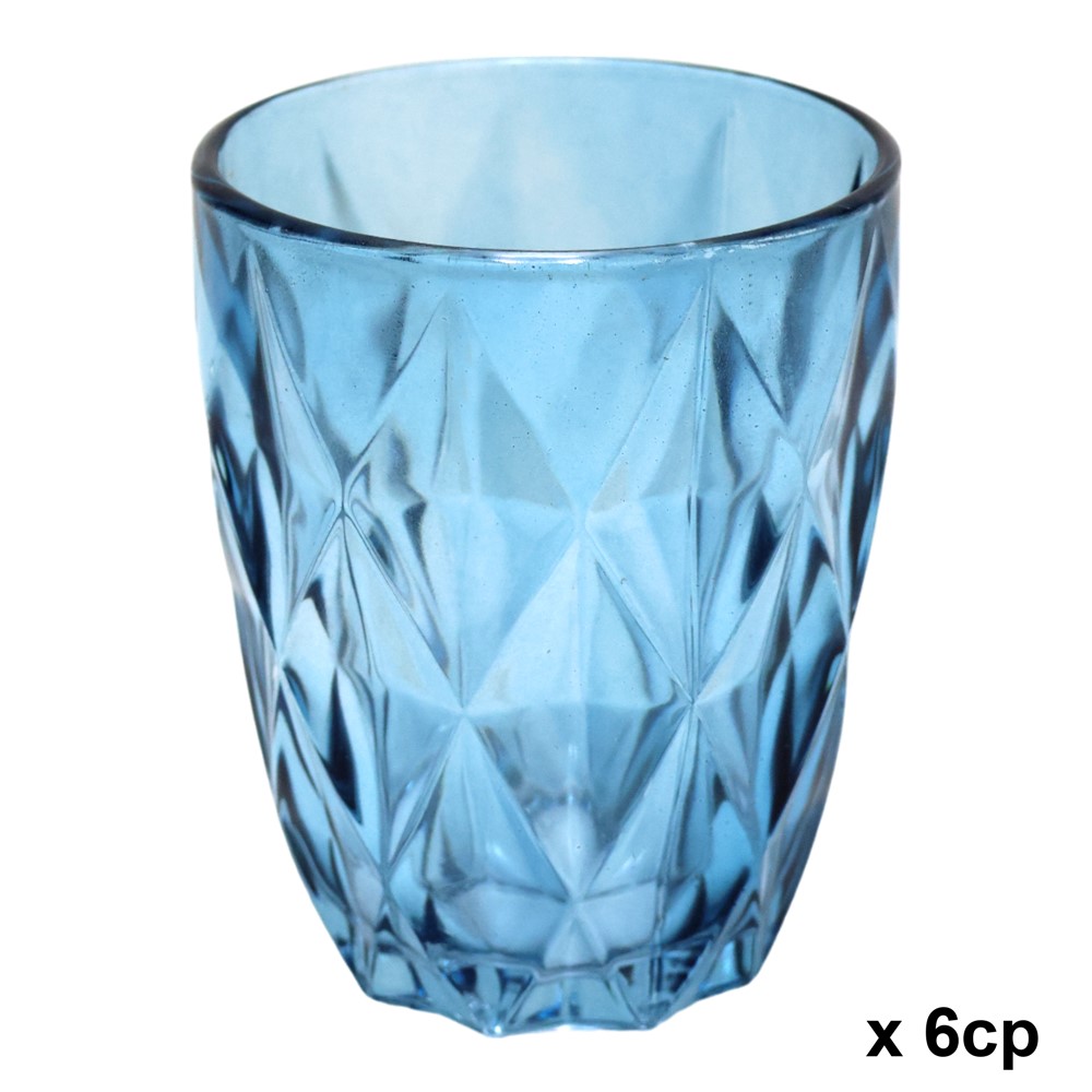 Set prej gjashtë gotash uji të realizuara nga qelqi në ngjyrën blu. Secila gotë ka dimensionet 8x10 cm, duke shtuar një prekje të veçantë.