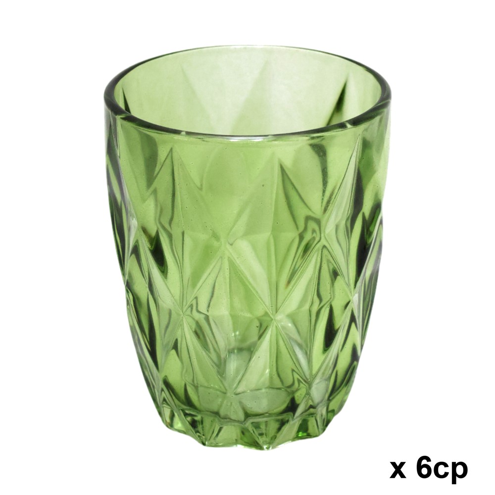 Set prej gjashtë gotash uji të realizuara nga qelqi në ngjyrën jeshile. Secila gotë ka dimensionet 8x10 cm, duke sjellë një atmosferë të ngrohtë dhe të freskëtë për shijen e pijes.