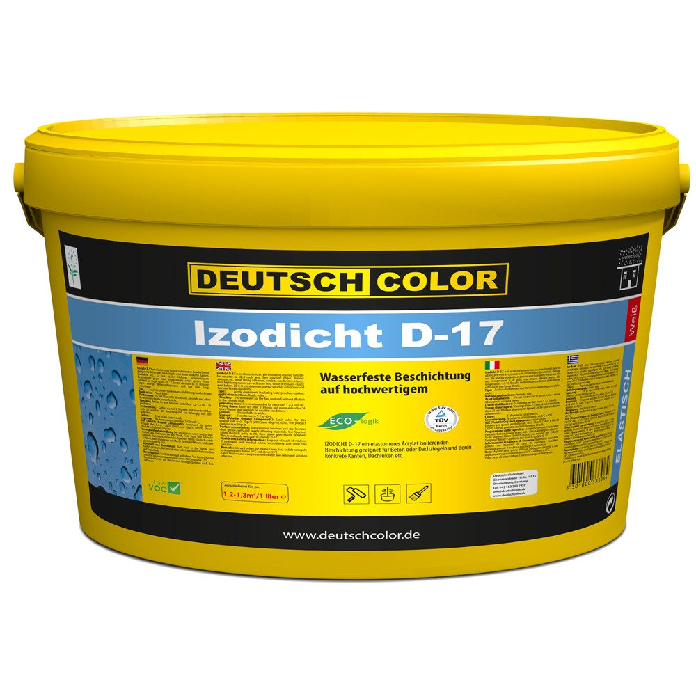 Izodicht D-17 është një shtresë hidroizoluese me përmbajtje të lartë rezinash elastomerike, e përshtatshme për izolimin e sipërfaqeve të betonit, i cili gjithashtu mund të aplikohet poshtë pllakave ose tjegullave. Karakterizohet nga aftësi shumë të mirë ngjitëse në të gjitha sipërfaqet. Siguron një rezistencë të lartë kundrejt temperaturave të larta dhe ngricës. I qëndrueshëm ndaj kushteve ekstreme klimaterike duke e ruajtur elasticitetin në temperatura nga më të paqëndrueshmet.