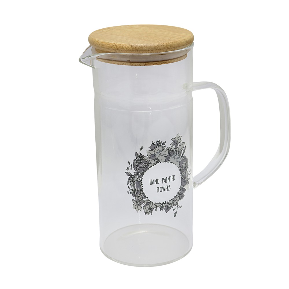 Kanë uji/lëngje, qelq/bambu, transparente, Dia.9.5xH21 cm / 1.2 Lt