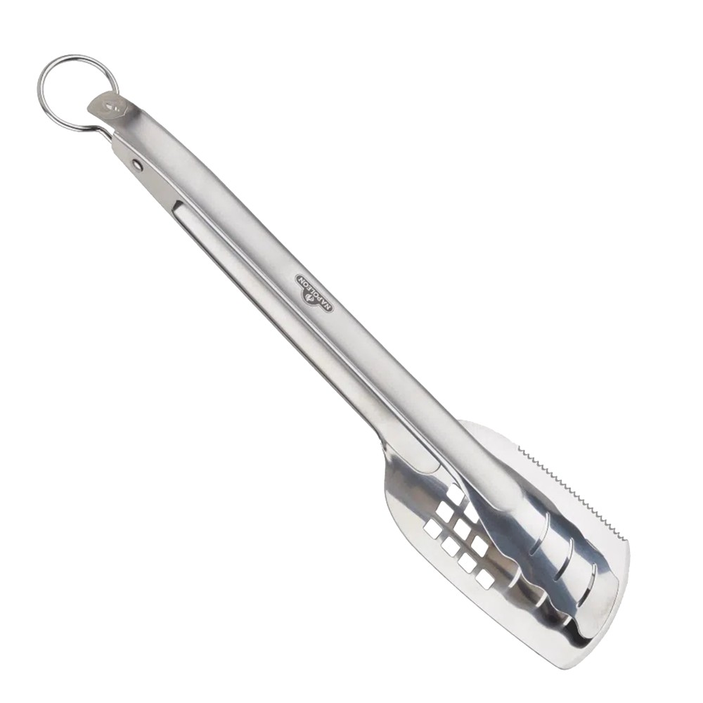 Kapësja e Napoleon 2 në 1 prej material inoksi në përmasë 43 cm, ka një qëndrueshmëri të lartë dhe është tepër praktike në përdorim. Ajo ka funksion 2 në 1, si kapëse dhe si spatul me një anë me skaj të mprehtë e cila ndihmon në ndarjen në porcione të vogla. Mekanizmi I mbylljes siguron ruajtjen e saj dhe varjen më pranë bbq. Eshtë rezistente dhe pastrohet shumë lehtë.