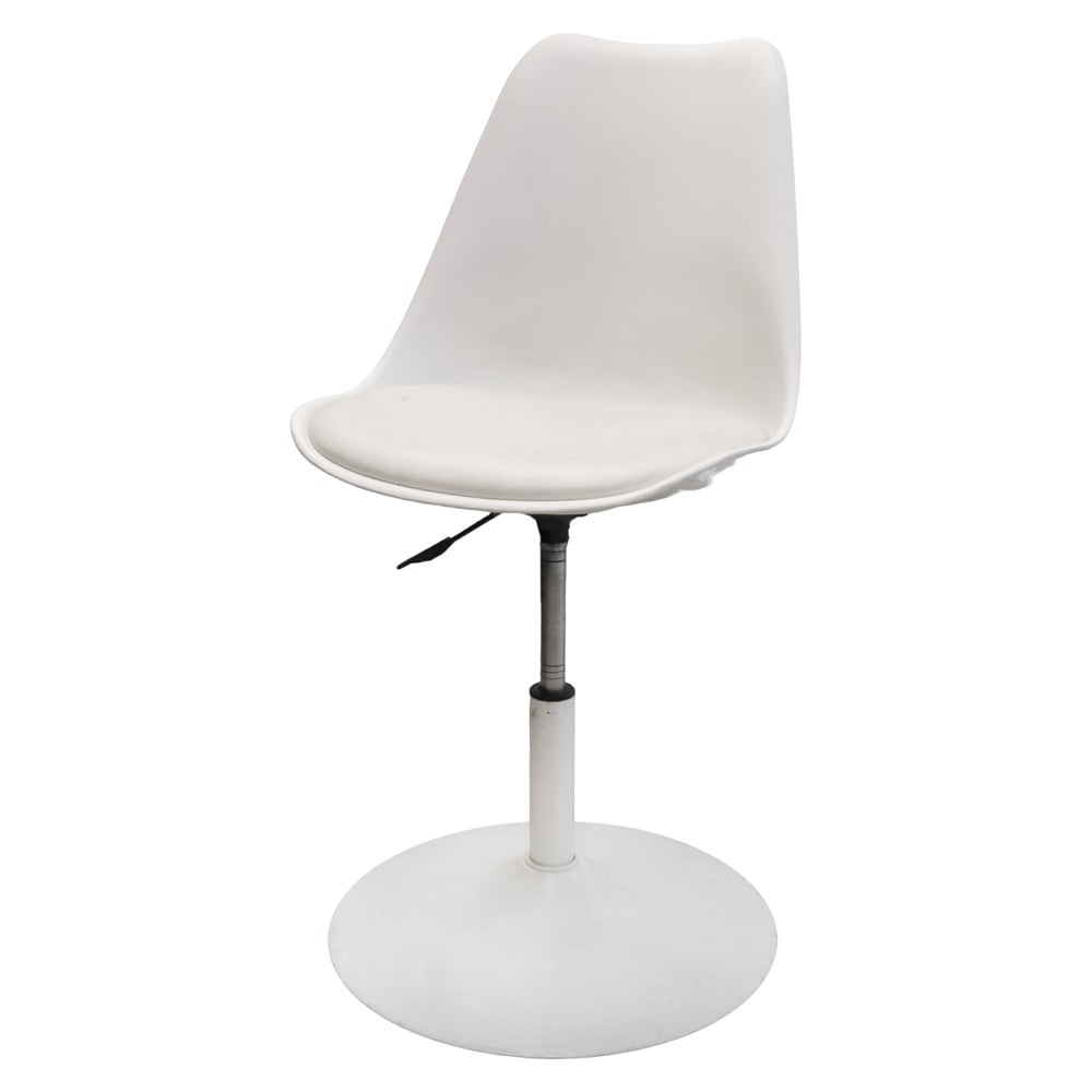 Karrige barit ka një ndenjëse të veshur me susta shumë në modë në formë guacke. E rregullueshme falë një doreze, ju mund të përshtatni lartësinë e sediljes midis sipas dëshirës. Baza e tij e gjerë siguron stabilitet të mirë.