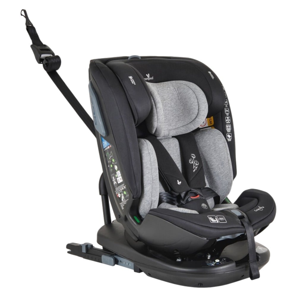Karrigia e makinës Gravity I-Size 40-150 cm, me sistem Isofix + Top Tether. I përshtatshëm nga 0m+ deri në 150 cm ose deri në përafërsisht 12 vjec. Kjo karrige ka parzmore sigurie 5 pikash me jastëkë të butë kundër rrëshqitjes së shpatullave. SPS – Sistemi mbrojtës anësor i cili ofron siguri shtesë. Mbështetësja e kokës ka shtuar shkumë memorie. Rrotullimi i sediljes 360 gradë dhe 4 pozicione mbështetëse. Mbushje ekstra e butë, anatomike për të porsalindurin e bërë nga 100% pambuk organik me shkumë memorie të shtuar. Mbushja e kokës dhe e shpatullave janë gjithashtu prej 100% pambuk.