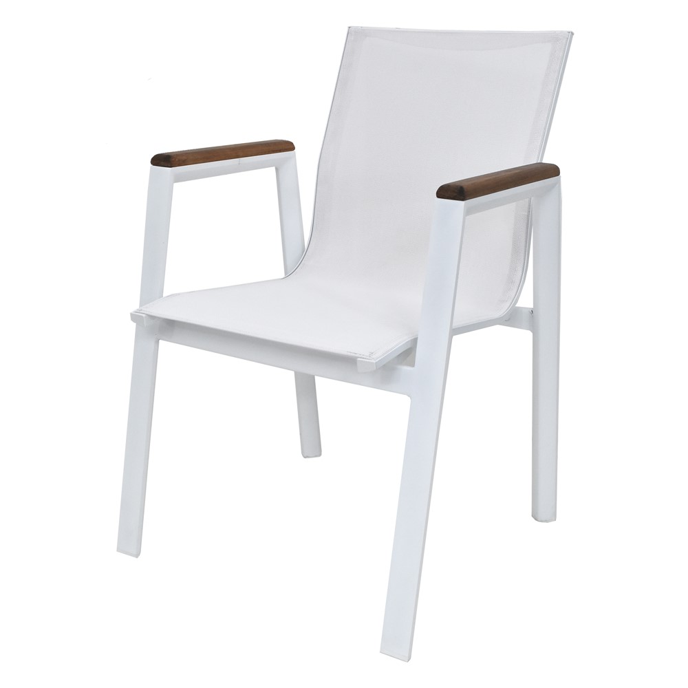 Po vlerësoni:Karrige me krahë Poseidon, alumin, dru iroko + tekstilen, e bardhë, 46x56xH86 cm