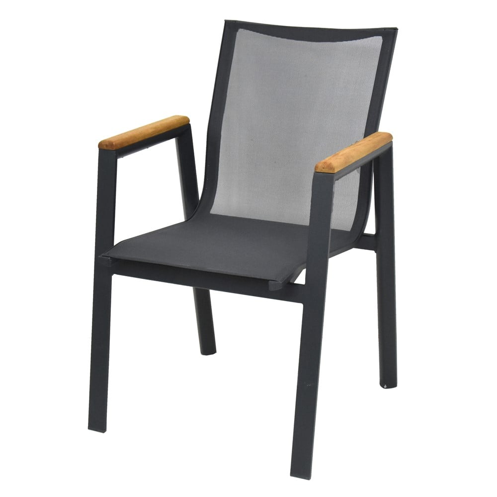Po vlerësoni:Karrige me krahë Poseidon, alumin, dru iroko + tekstilen, gri, 43x45xH86 cm