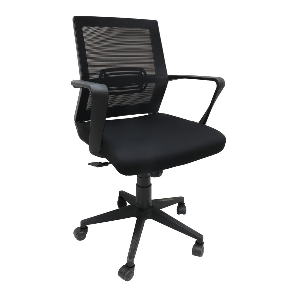 Karrige zyre, mbështetëse rrjetëzuar, ulëse veshje tekstili, krahë PP, këmbë dhe rrota najloni, e zezë, 61x60xH94-104 cm
