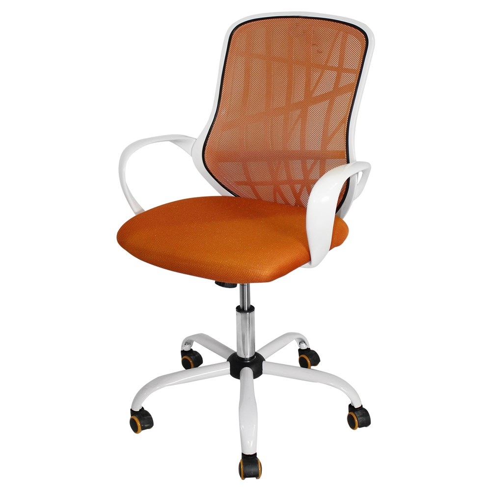 Karrige zyre me rrota, me krahë, strukturë metalike, rrjetë dhe tapiceri tekstili, portokalli, 62x61xH107-119 cm