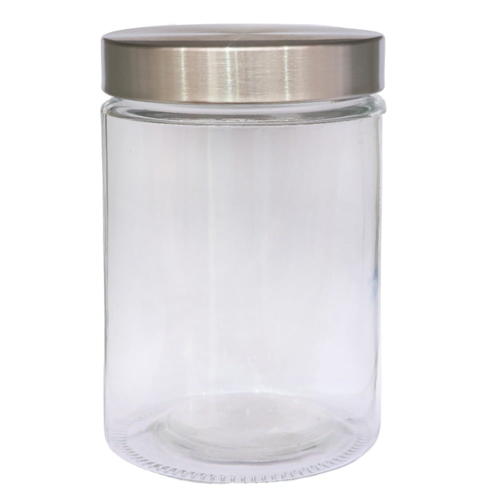 Dizajni transparent i qelqit lejon shikimin e përmbajtjes së brendshme të kavanozit. Kapaku i realizuar nga materiale metalike siguron një mbyllje të sigurt dhe të qëndrueshme për të mbajtur freskinë dhe cilësinë e produkteve të ruajtura brenda.