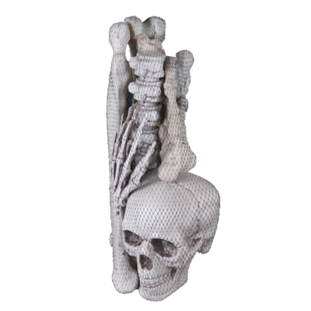 Set kocakash mund të varet ose të vendosen në një qoshe për një efekt dramatik. paketimi ne rrjetë u lejon të gjithëve te shohin skeletin e kockat brenda. Ky dekorim me kocka gjithashtu jane ideal për shtëpitë e përhumbura. Seti përmban: 12 kocka të ndryshme.