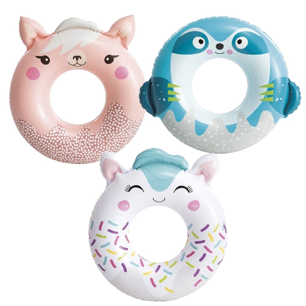 Lëreni të voglin tuaj të shijojë orë të tëra argëtimi duke e lënë të notojë dhe të notojë në pishinë duke përdorur Intex Cute Animal Tubes Inflatable Float.