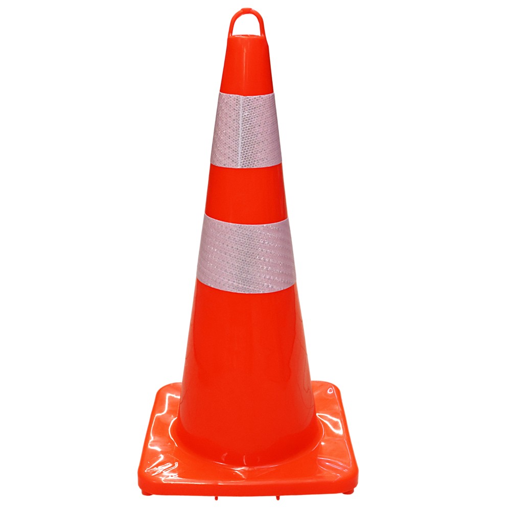 Kon sigurie me shirita fluoreshente, i prodhuar nga material plastik për të qenë rezistent. Ky produkt është i përshtatshëm për të kufizuar lëvizjen e automjeteve ose njerëzve në zona të caktuara. Mund të përdoret në parkingje, oborre ose pranë ndërtesave. Materiali i përdorur në ndërtimin e këtij produkti e bën këtë të fundit shumë elastik ndaj goditjeve të marra, duke mos dëmtuar konin si dhe objektin goditës (makina, persona fizikë etj.).