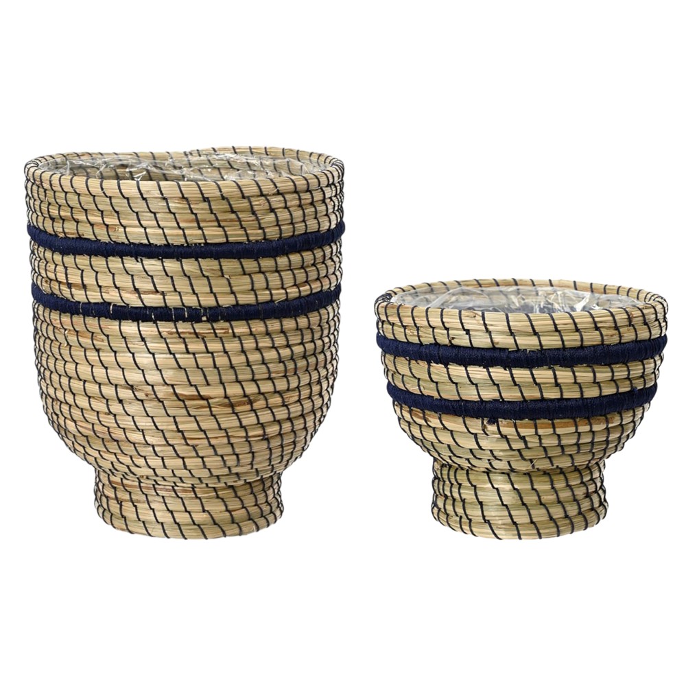 Kosh për lule, set 2 copë, kashtë, Natyrale/E zezë