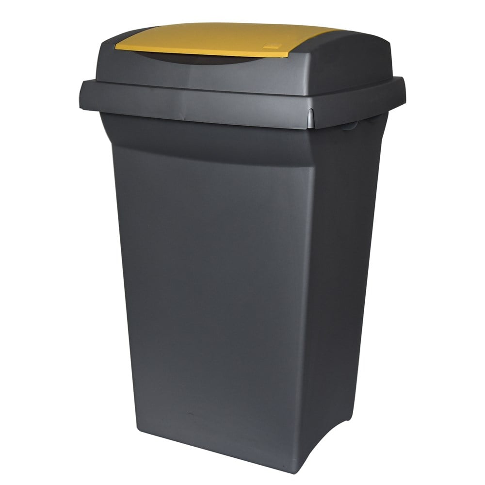 Po vlerësoni:Kosh plehrash, 50 lt, plastike, gri, kapak i verdhë, 43x39xH68 cm