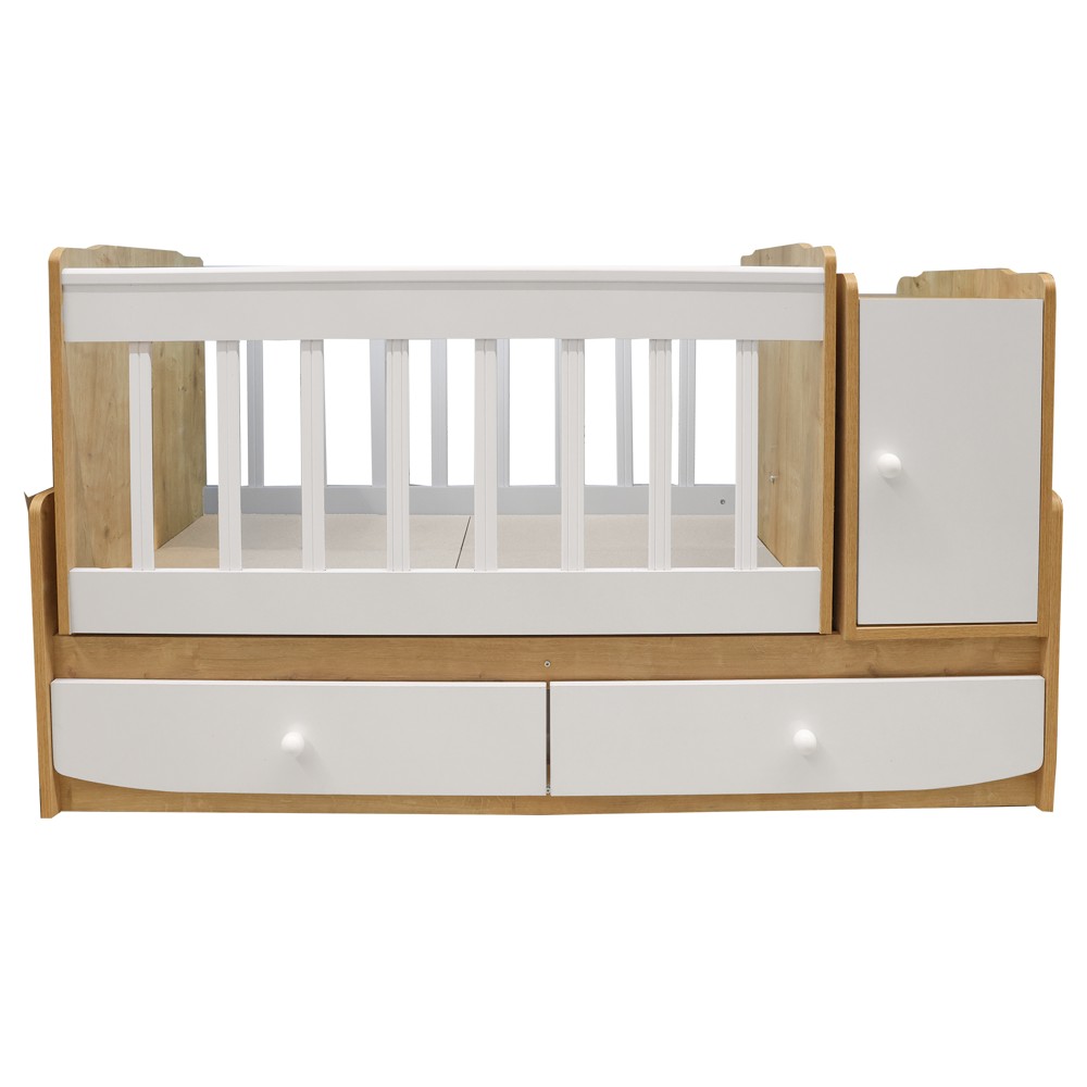 Krevati për femije I krijuar nga material MDF, në përmasat 95x132x68 cm. Ai ka sirtarë ku mund të organizoni veshjet e fëmijës si dhe hapësirën për ndërrimin e fëmijës. Krevati është vendi ku fëmijet e porsalindur kalojnë shumicën e kohës, për këtë arsye duhet të studiohet e të ndertohet duke mbajtur parasysh karakteristikat dhe nevojat e femijës në vetvete. Ky krevat eshte teper rezistent, dhe është antialergjik për fëmijët.