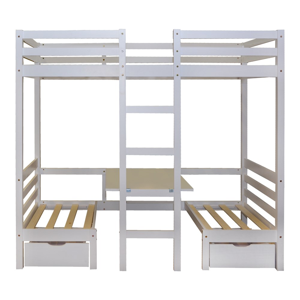 Krevat tek dhe tavolinë studimi, dru pishe, e bardhë, 200x97xH180 cm
