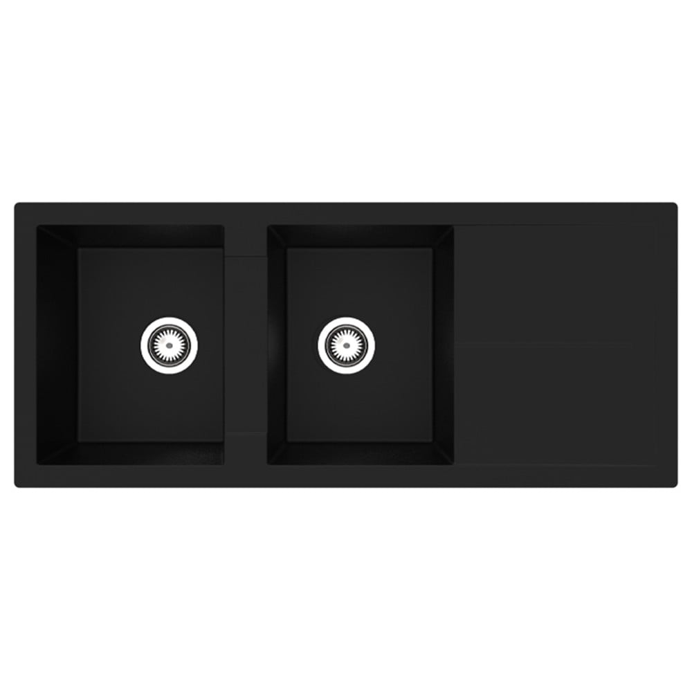 Lavapjatë, 2 gropa, djathtas/majtas, rezinë (40%) dhe fibra xhami(60%), e zezë, 116x50xH21.4 cm