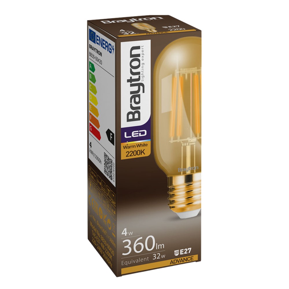 Llambe LED me filament, Braytron, 4W, E27, 2200K