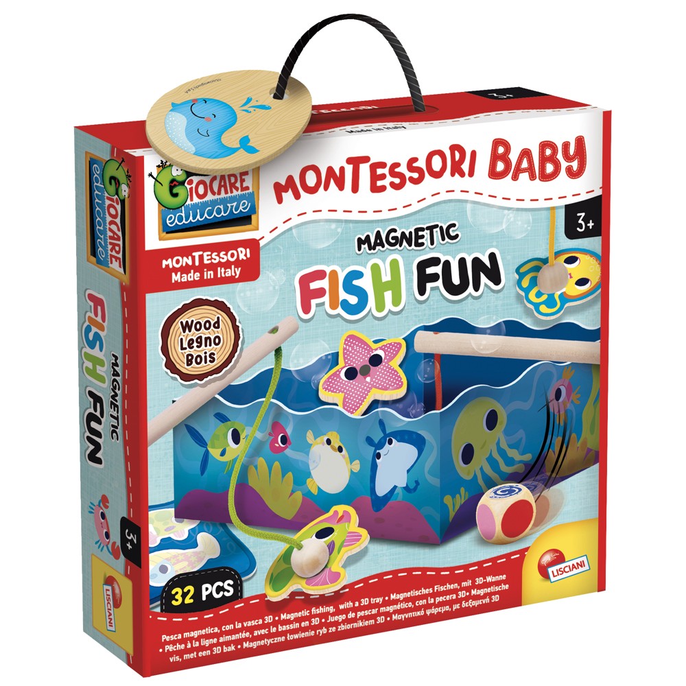Lodër për fëmijë, Montessori, Magnetic fish fun, druri, 32 pjesë, +3 vjec, 1 copë