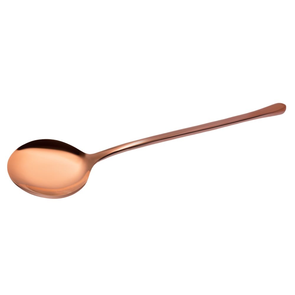 Kjo lugë ëmbëlsire elegante është projektuar për të shtuar një prekje sofistikimi çdo tavoline. Ngjyra e saj e bukur bakri e bën atë një pikë fokale, ndërsa materiali i inoxit siguron qëndrueshmëri dhe lehtësi në pastrim. Me një gjatësi prej 14.8 cm, ajo është perfekte për të shijuar çdo lloj ëmbëlsire.