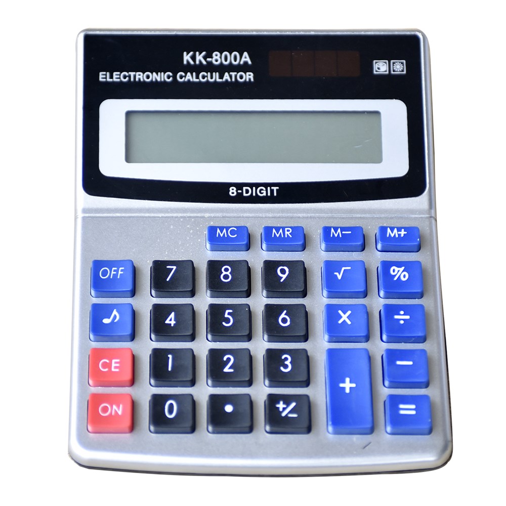 Makinë llogaritëse elektronike, modeli KK-800A, me 6 funksione matematikore, memorie dhe 8 dixhits, me butona me muzikë dhe fikje automatike, e përbërë prej materiali plastik, në ngjyrë gri. Makina llogaritëse ka përmasa kompakte të cilat e bëjnë praktike në përdorim. Ky produkt është i përshtatshëm për përdorim në shkolla, zyra, kancelari, etj.