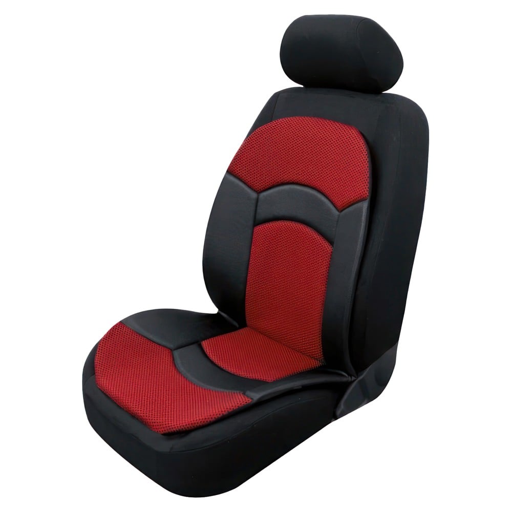 100% poliester. Kombinim i pëlhurës së thurur Jacquard me një pamje lëkure. I përshtatshëm për automjete me airbag anësor. Përmasa universale. Ngjyra: I kuq.