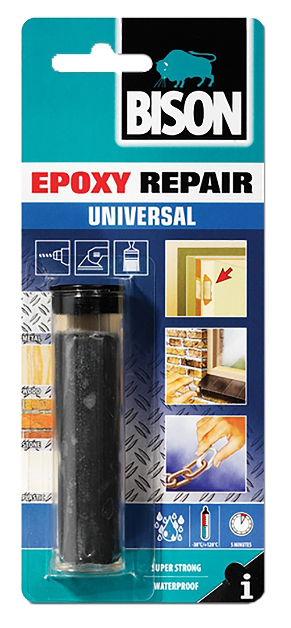 Ngjitës dhe riparues UNIVERSAL EPOXY, ngjyrë metali. Ideal për riparime në objekte metalike të cilat kanë nevojë për t'u rezistuar kushteve ekstreme (forcave, vibracionin, ujë (të detit), presione të rënda). Është i përshtatshëm për të ngjitur vrimat në radiator. Ngjit në metale (çelik, alumin, hekur) gur, dru, beton dhe sintetike të ndryshme. Jo e përshtatshme për Polietileni (PE), polypropylene (PP), PTFE dhe gome silikoni. Rezistent në temperaturë nga -40°C deri +60°C. Aplikojeni në temperaturat midis 5°C dhe 35°C. Sipërfaqja duhet të jetë e pastër nga pluhurat dhe graso.