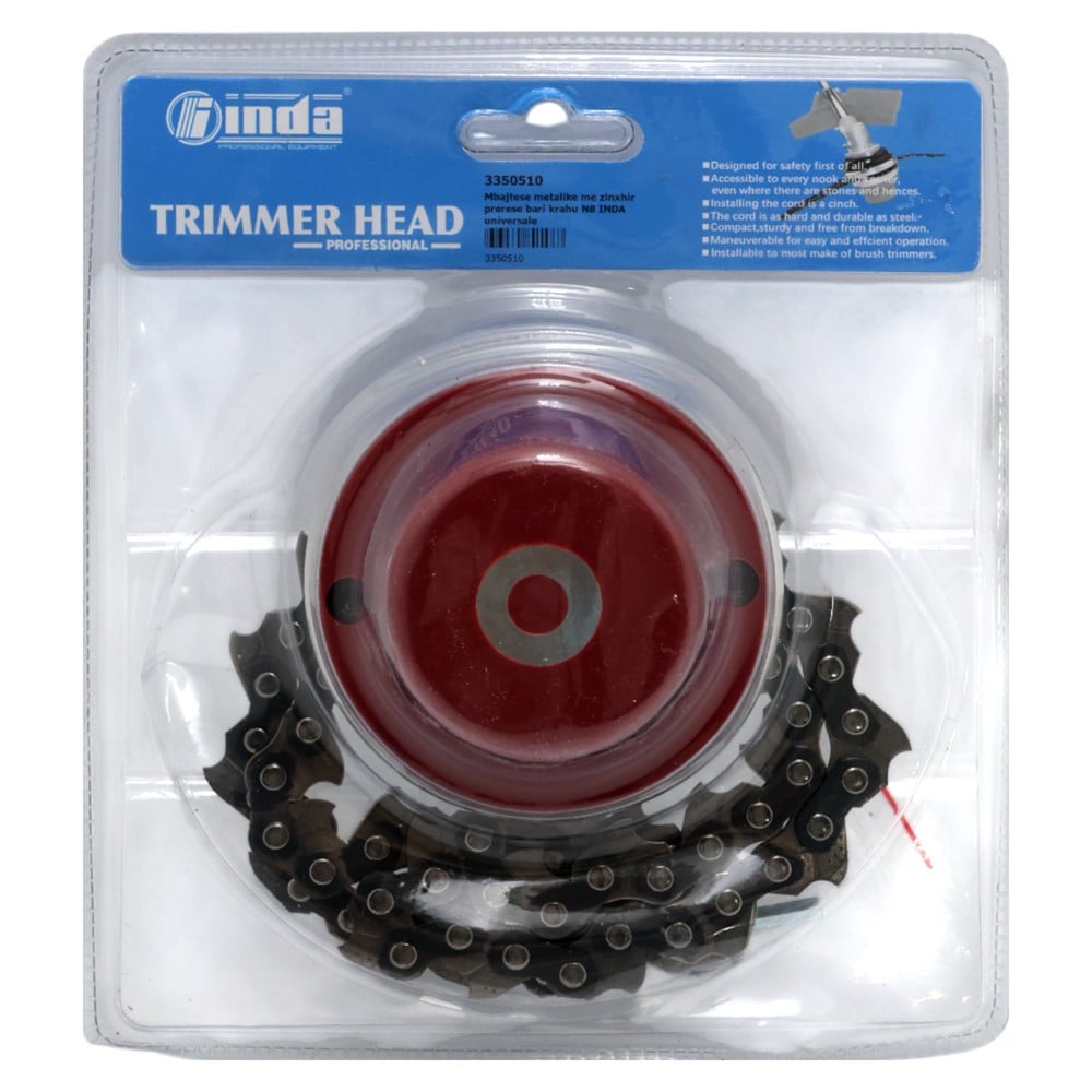 Mbajtësja metalike me zinxhir N8 është një aksesor universal për prerëset e barit, i projektuar për qëndrueshmëri dhe efikasitet të lartë gjatë përdorimit në kushte të ndryshme terreni. Falë konstruksionit të fortë metalik dhe zinxhirit të integruar, kjo mbajtëse siguron prerje të fuqishme dhe të qëndrueshme, duke përballuar me lehtësi bar të dendur, shkurre apo bimësi të ngatërruar. Dizajni universal e bën të përshtatshme për shumicën e modeleve standarde të korrëseve të barit, ndërsa zinxhiri ndihmon në uljen e ngarkesës mbi motorin dhe rrit jetëgjatësinë e pajisjes. Një zgjidhje e besueshme për përdoruesit që kërkojnë forcë, stabilitet dhe performancë të lartë në mirëmbajtjen e ambienteve të jashtme.
