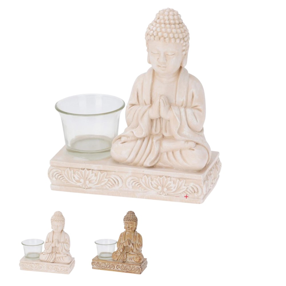 Mbajtëse qiriri, polirezinë, bezhë, kafe, H15.5 x W15 x D7.2 cm