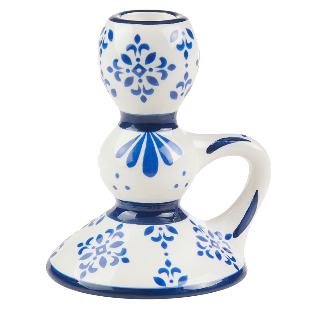 Mbajtëse qiriri, qeramike, blu/e bardhë, 9.4x10.3xH11.8 cm