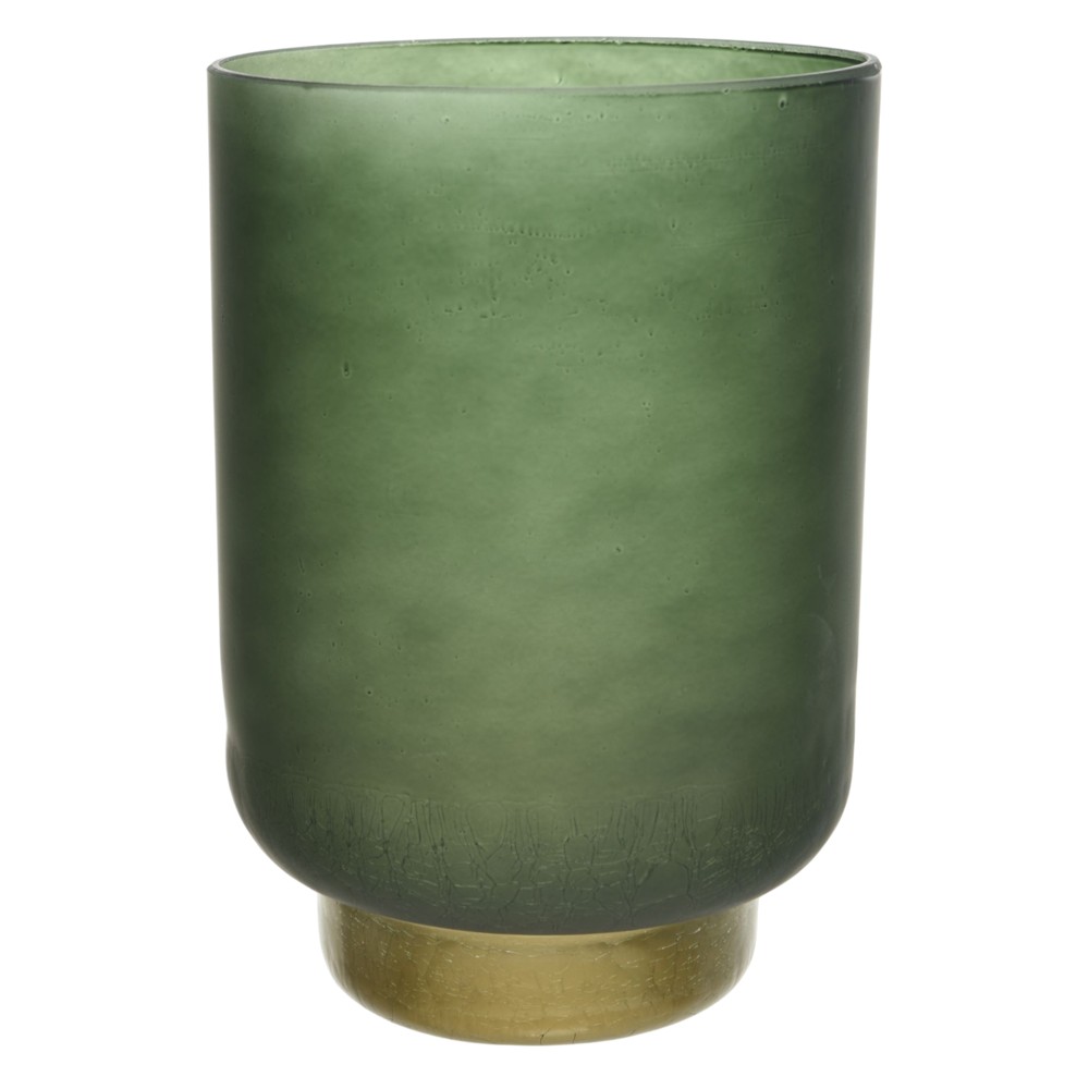 Kjo mbajtëse qiriu elegante është punuar prej qelqi në ngjyrë jeshile me një bazë ngjyrë të artë, duke sjellë një kombinim të rafinuar ngjyrash dhe materialesh. Me përmasa Dia.17xH25 cm, ajo është ideale për krijimin e një atmosfere të ngrohtë dhe moderne në çdo ambient. Dizajni i saj minimalist dhe ngjyra jeshile mat i japin një ndjesi luksoze dhe qetësuese, ndërsa baza metalike në ngjyrë floriri shton një prekje të sofistikuar. E përshtatshme për dhoma ndenjeje, tavolina apo kënde relaksi.