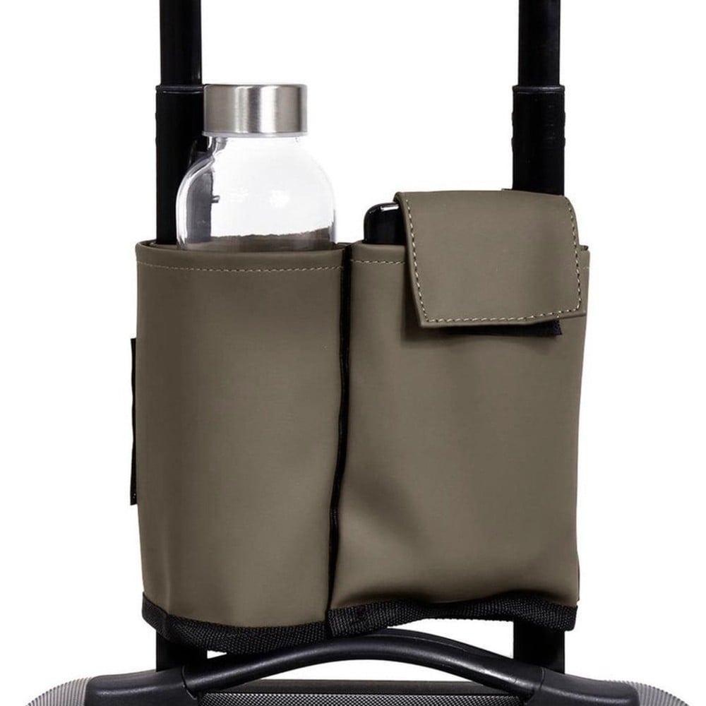 Kjo mbajtëse shishe për valixhe Norländer është një aksesor praktik për çdo udhëtim. Ngjitet mirë në dorezën e valixhes dhe ofron mundësi të shumta ruajtjeje për shishe dhe aksesorë të tjerë të ndryshëm. Ndarja e parë është ideale për sende më të vogla si telefoni juaj, powerbank, kufjet ose karikuesi. Ndarja e dytë është projektuar për të mbajtur shishen e ujit. Në pjesën e pasme, ka një xhep me zinxhir, i përsosur për ruajtjen e sigurt të parave ose dokumenteve të rëndësishme. Ideale dhe e përshtatshme për çdo valixhe udhëtimi.