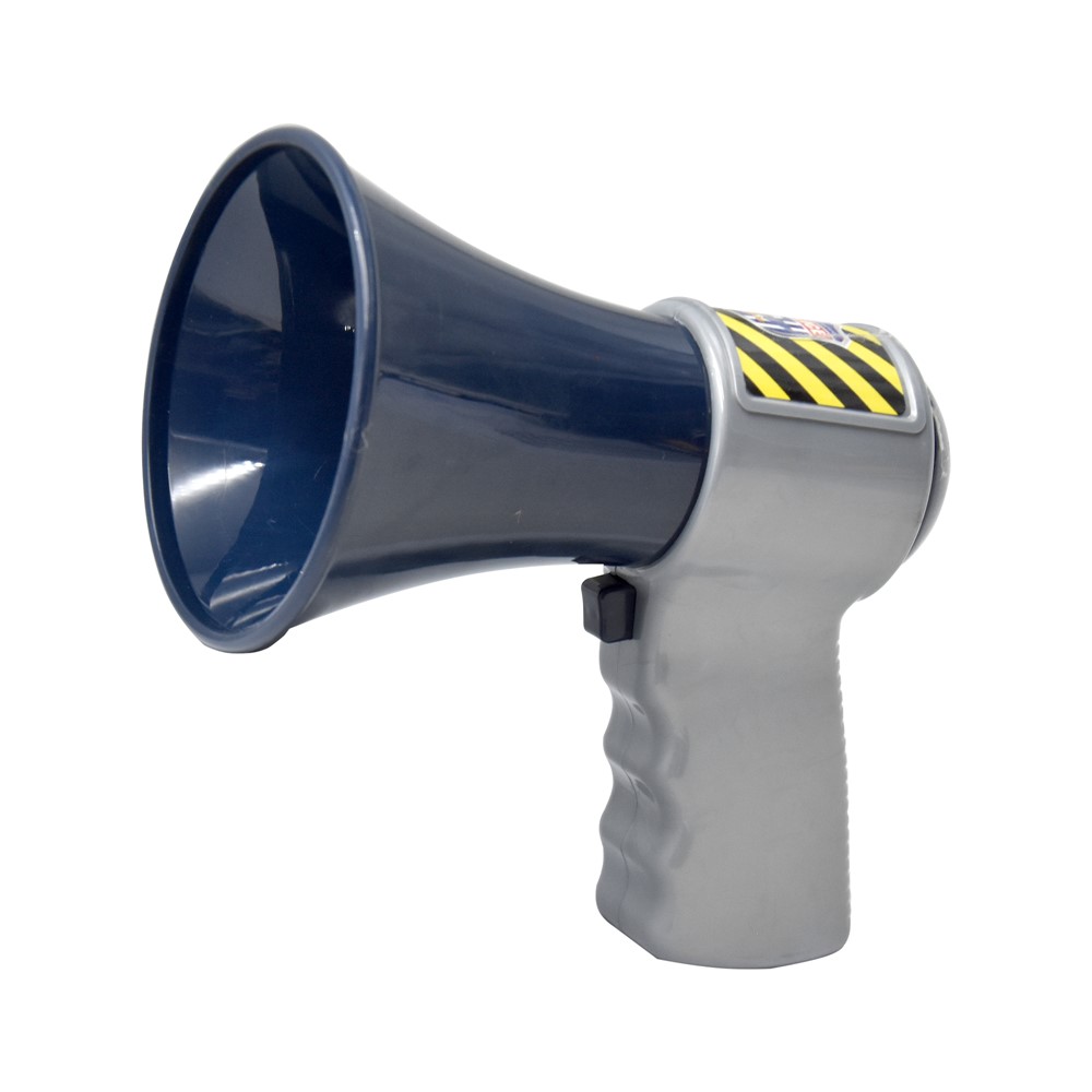 Megafon, prej materiali prej polici në ngjyrë gri dhe të zezë, në përmasë 24 cm. Ideale për tu përdorur si aksesor për të plotësuar veshjen e policit. Megafoni është me bateri të cilat nuk janë të përfshira.